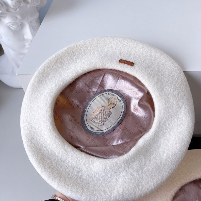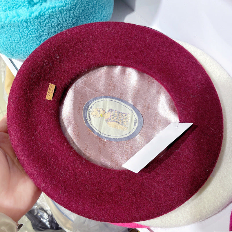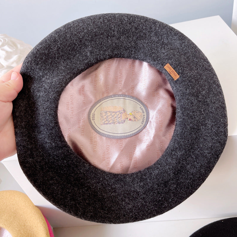 Product category: Beret Applicable gender: Female Material: Wool Style: Japanese Weaving method: Satin Popular element: Naked Hat top style: Dome Size: M (56-58cm)
