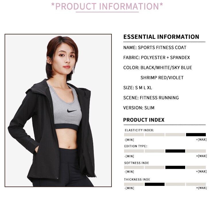 Applicable gender: Female Pattern: solid color Sleeve length: long sleeve Collar type: stand collar Hooded or not: Hooded Detachable: not detachable With or without bladder: without bladder Thin and thick: Plush Hairless collar: hairless Fabric Name: Cotton Blend Fabric composition polyester (polyester) Fabric composition content: 87% Lining Name: cotton blended Lining composition: Spandex Lining composition: 13% Applicable attribute: Yoga Fitness Exercise