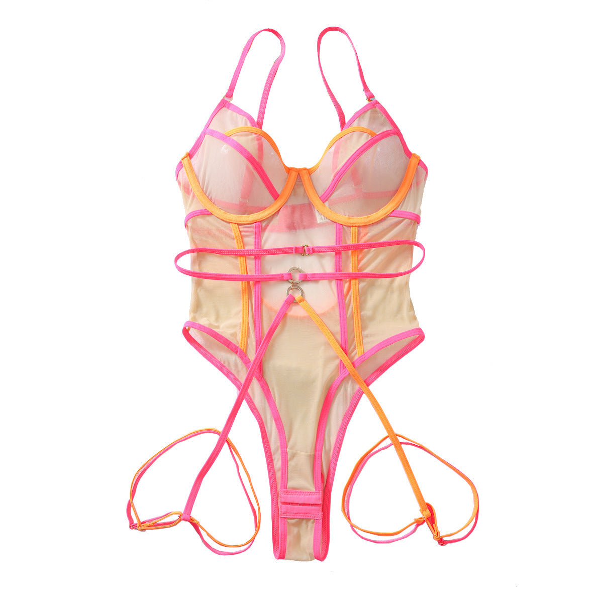 Product information: Fabric name: Mesh Color: Rose Red Orange, with steel ring, in stock Main fabric composition: Polyester Fiber Size: S,M,L Applicable Gender: Female Style: tights, see-through dress, mesh