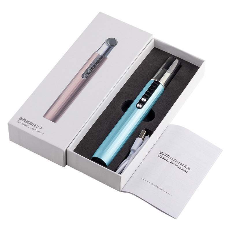 Product name: EMS hot and cold eye beauty instrument Commodity material: metal Power supply: Type-c charging Charging power: 5V=1A Working voltage: 3.7V Rated power: 0.8W Battery capacity: 800mAh Charging time: 2-3 hours Working time: 240 minutes/time Host size: 160*21 *21mm Host net weight: 92.2g Host color: blue/pink Color box size: 194*73*31mm