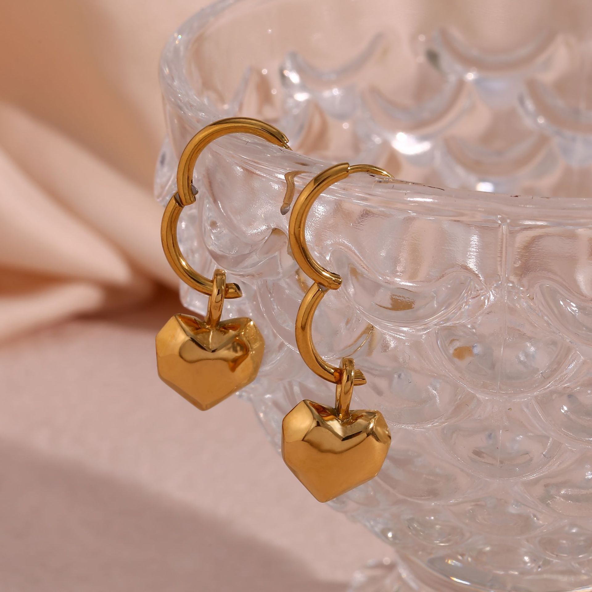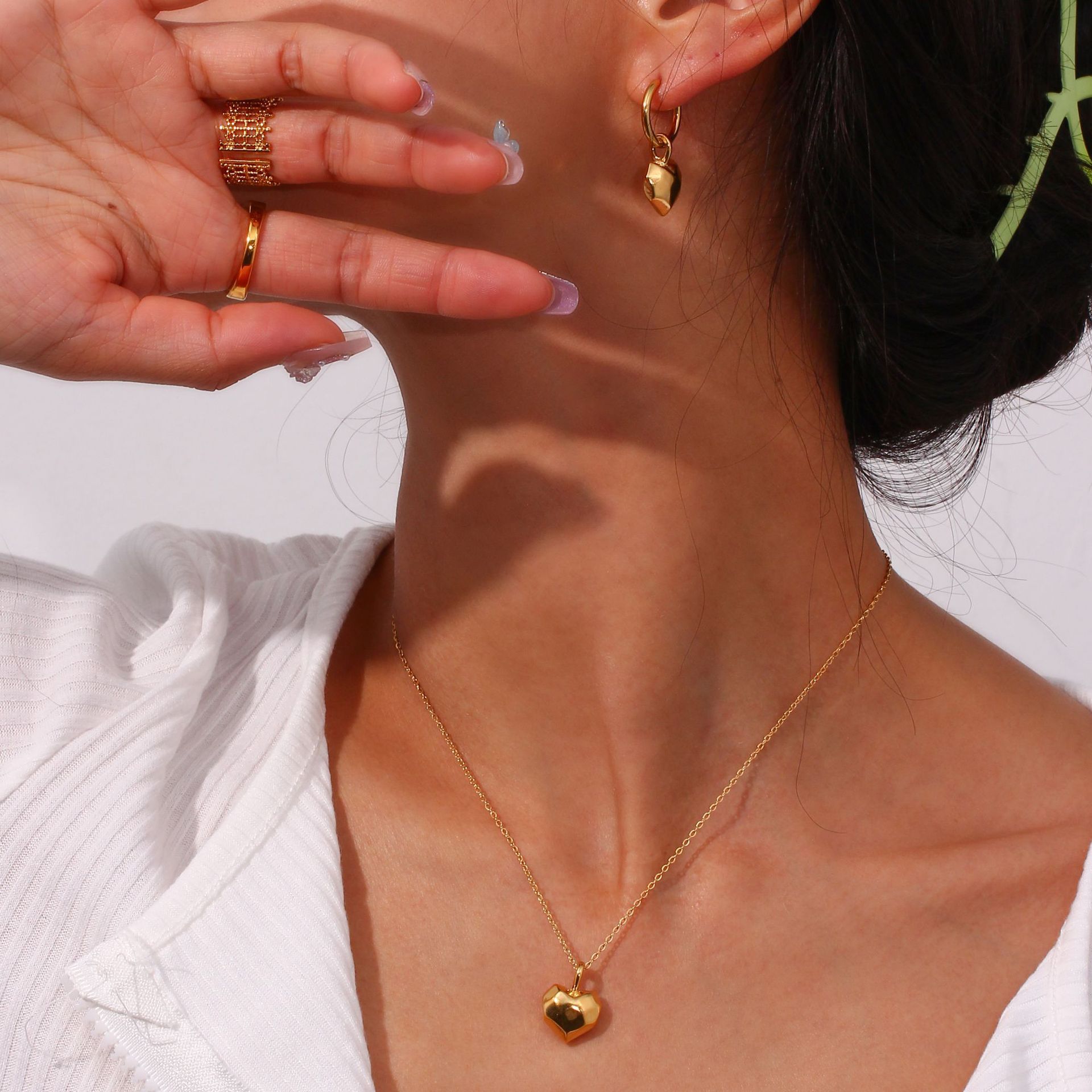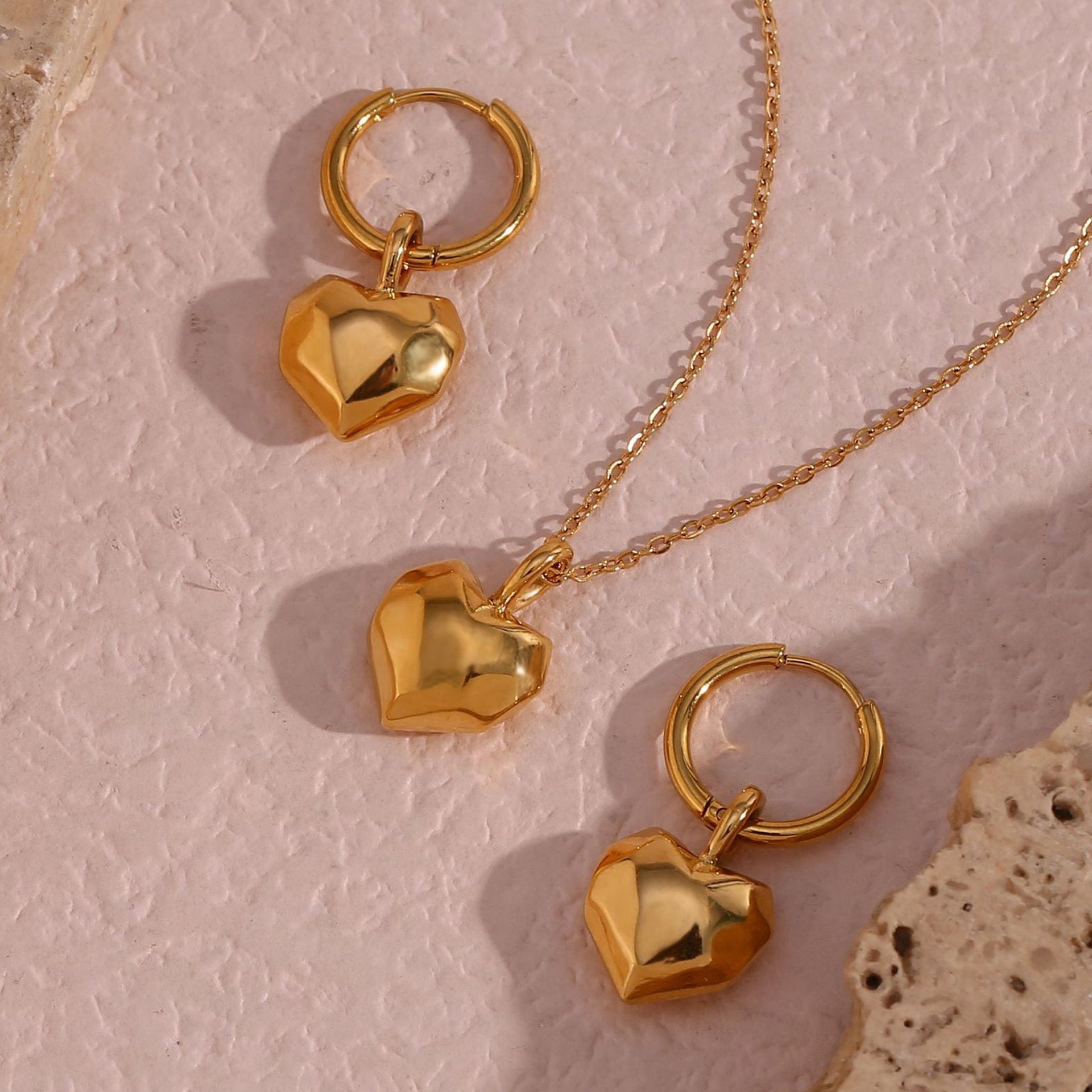Product information: Treatment Process: Electroplating Color: solid faceted chocolate love pendant necklace-gold, solid faceted chocolate love pendant earrings-Gold Applicable population: Female Pendant material: titanium steel Style: Simple Chain style: Regular chain Material: Stainless steel Shape: Geometry Popular elements: Love/heart Style: fashion OL