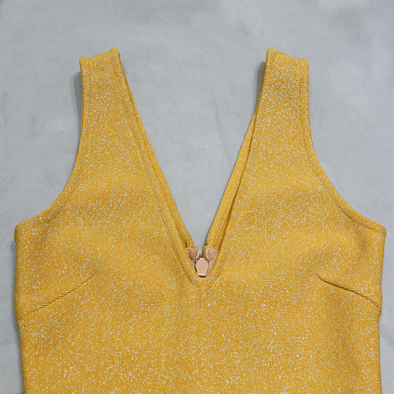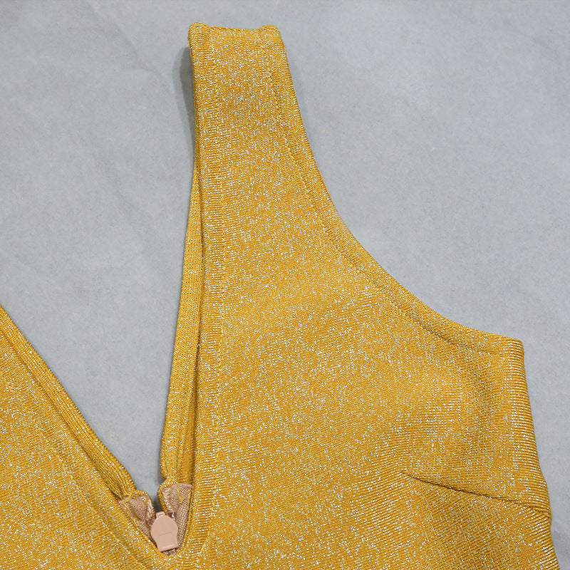 Product information : Style: basic Combination form: one piece Skirt length: mid skirt Skirt type: one step skirt Neck type: V neck Main fabric composition: viscose The content of main fabric components: 71%-80% Main fabric composition 2 : Spandex Content of main fabric ingredient 2: 10%-29% Color : Gold Size Information: Size: S,M,L