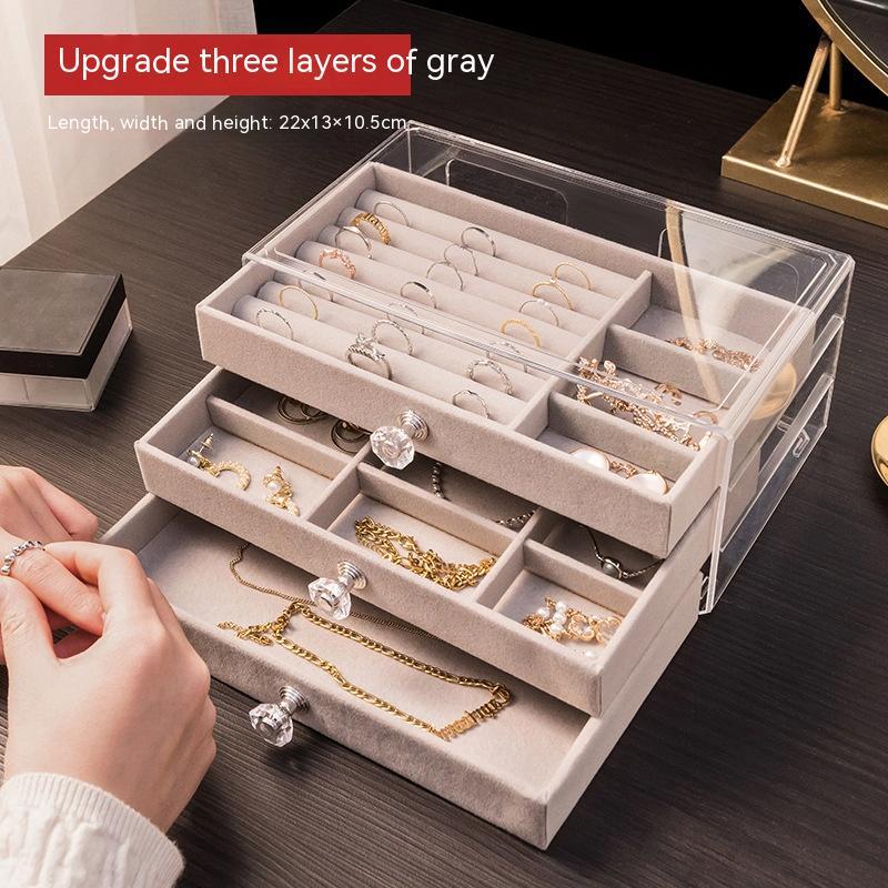 Product information: Name: flannel jewelry storage box Material: inner flannel PET Weight: about 750g Size: 22CMx13CMx10.5CM Color: three layers of gray, three layers of beige