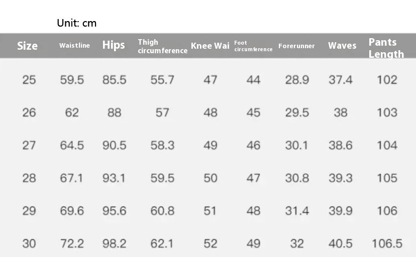 Product information: Fabric name: denim Color: nostalgic light blue Main fabric composition: Cotton Size: 25 (less than 85kg),26 (42.50kg-47.50kg,27 (47.50kg-52.50kg,28 (52.50kg-57.50kg,29 (57.50kg-62.50kg, 30 (62.50kg-67.50kg) Style: Elegant style