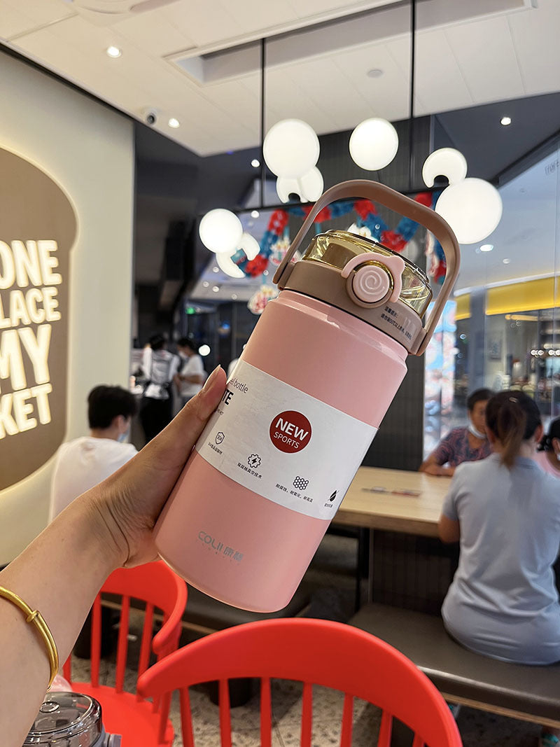 Product information: Color: white, black, pink, light green, sapphire blue, five-color mixed hair Material of liner: 304 stainless steel Material: inner 304 outer 201 Packing specification: Color box Shell material: 201 stainless steel Style: large capacity, with straw, with lock, Tumbler Style: modern simplicity Capacity: 1000 ml