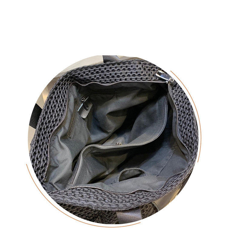 Specification: Color: Mesh Style: Korean Material: Nylon Luggage trend style: Tote bag Lining texture: Polyester cotton Bag shape: Horizontal square Opening method: Zipper Internal structure of the bag: Zipper pocket, mobile phone pocket, interlayer zipper pocket Pattern: Plain Packing list: