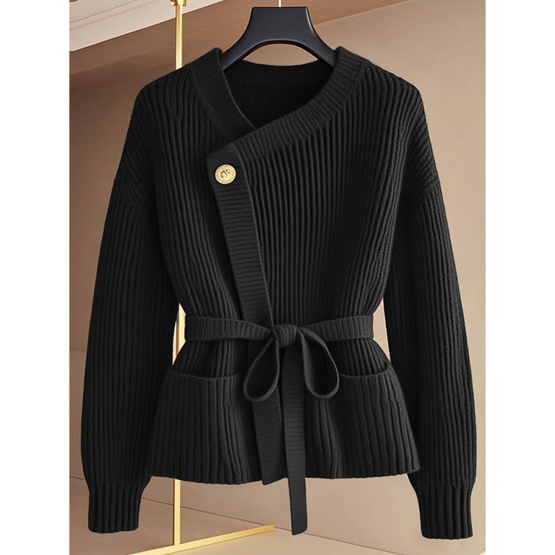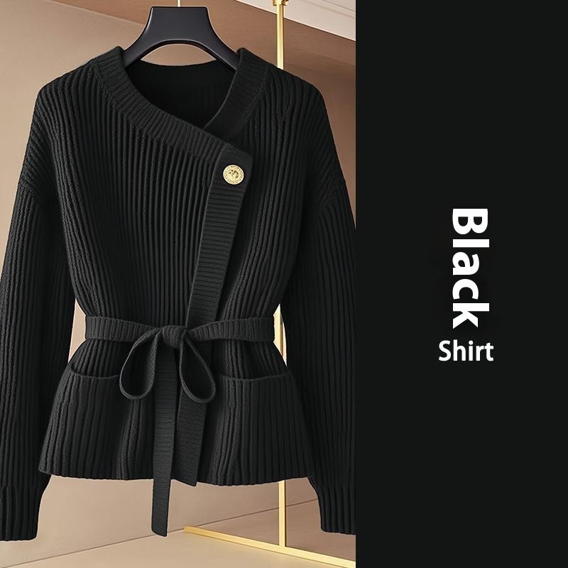 Product information: Pattern: see details Fabric name: acrylic Color: red, black Sleeve type: Flight sleeve Size: S,M,L,XL,2XL Wearing style: Cardigan Style type: temperament commute Popular elements: lace-up Style: Cardigan Style: urban style Craft: Lace Up