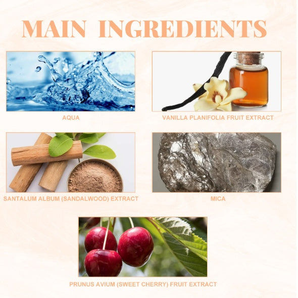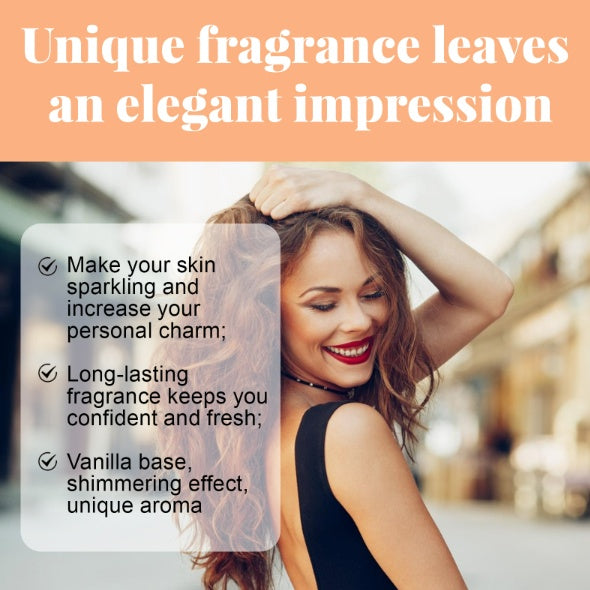 Our nude vanilla glitter perfume spray contains vanilla extract, cherry extract, sandalwood extract. It can show off your charm and add elegance and confidence, make yourself stand out in social situations, attract more attention and appreciation, help create a romantic atmosphere, increase the appeal of emotional communication, and make the date more memorable. It is easy to use: spray the perfume on the wrist, neck, behind the ears, or spray the perfume in the air and turn it into a mist, so that the perfume is evenly distributed throughout the body, leaving a fragrant aroma. With a vanilla base combined with a glitter effect to create a unique aroma and visual effect, it can give off a mature and elegant fragrance that leaves a lasting impression.