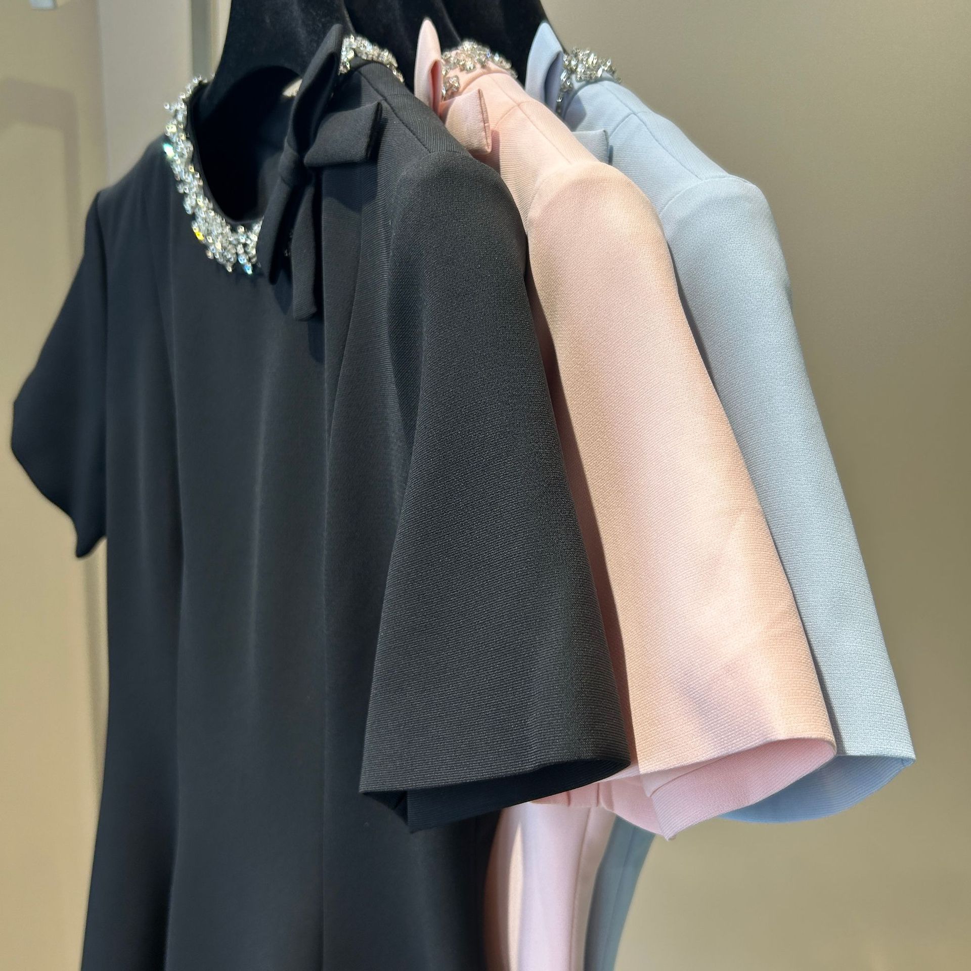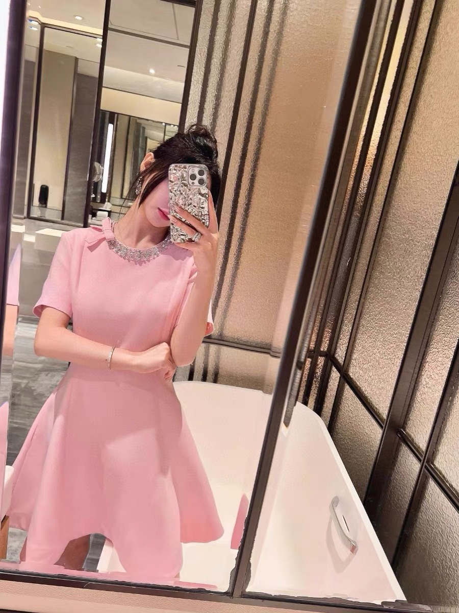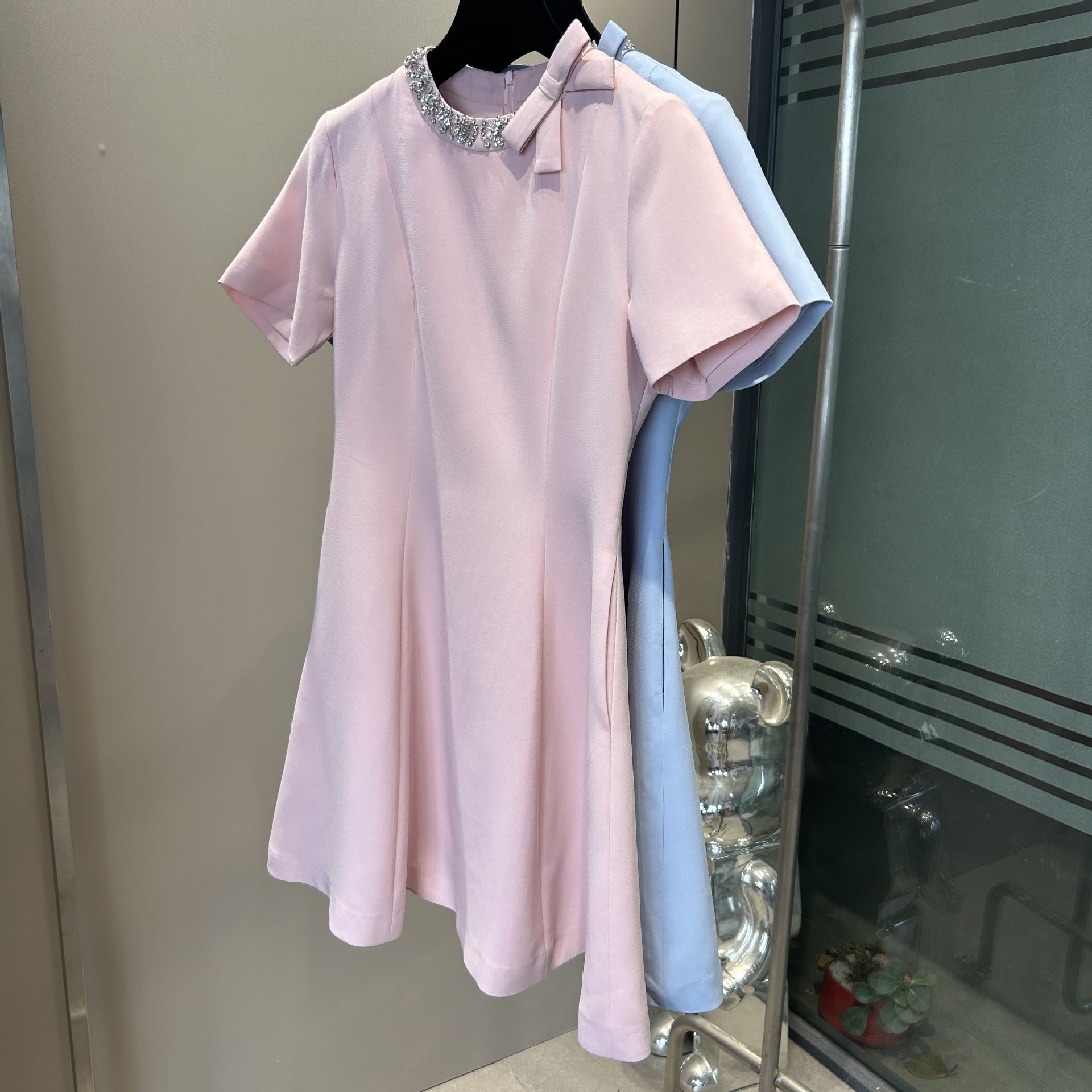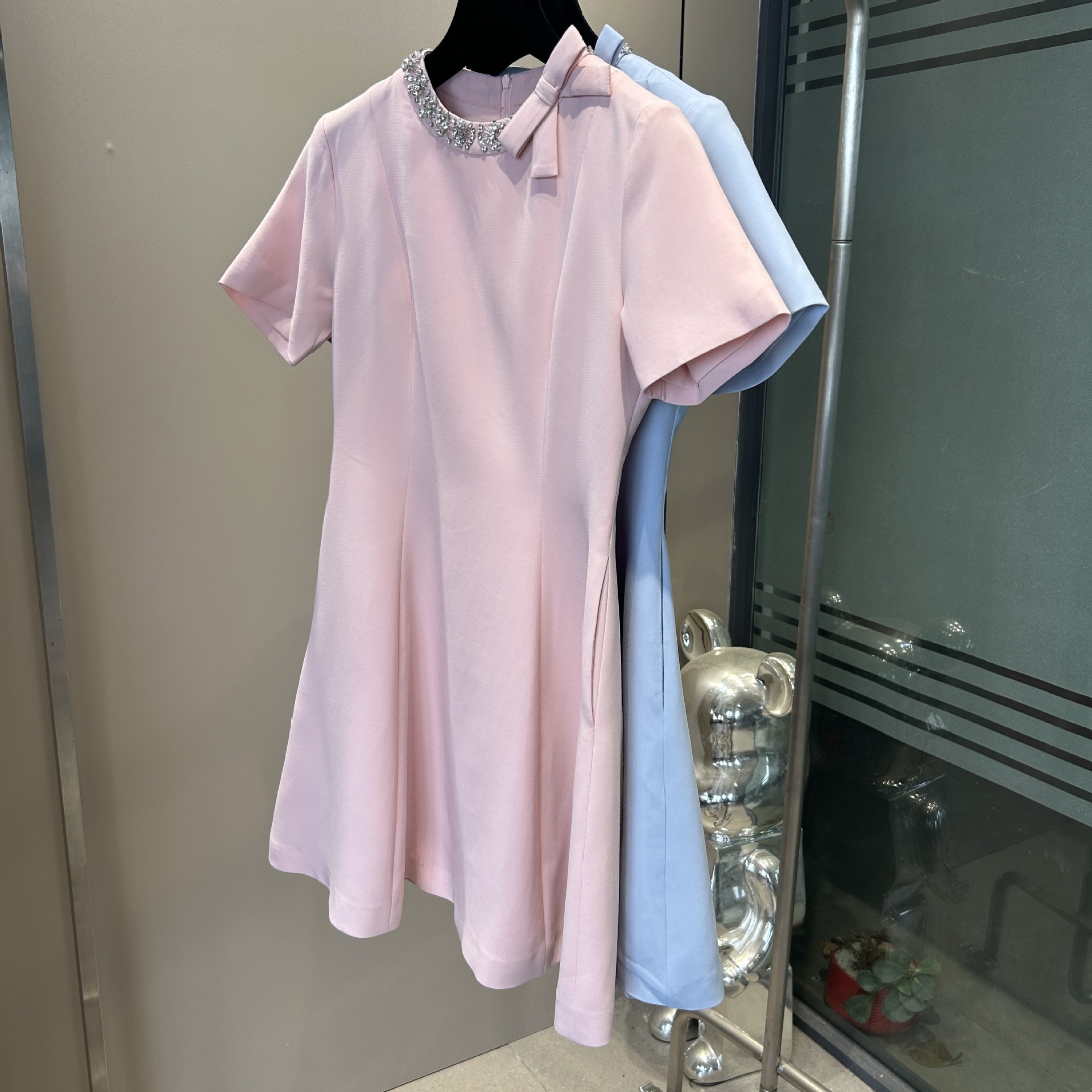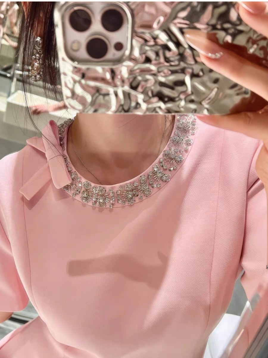 Product information: Pattern: solid color Skirt-type: fishtail skirt Color: pink, blue, black Waist Type: Mid waist Size: S,M,L,XL Style type: private clothing socialite Combination form: Single piece Skirt length: short skirt Popular elements: Diamond Style: Basic Fabric name: silk blend Sleeve type: regular sleeve Main fabric composition: viscose Sleeve length: short sleeve Skirt Category: Dress Style: Socialite style Craft: beaded