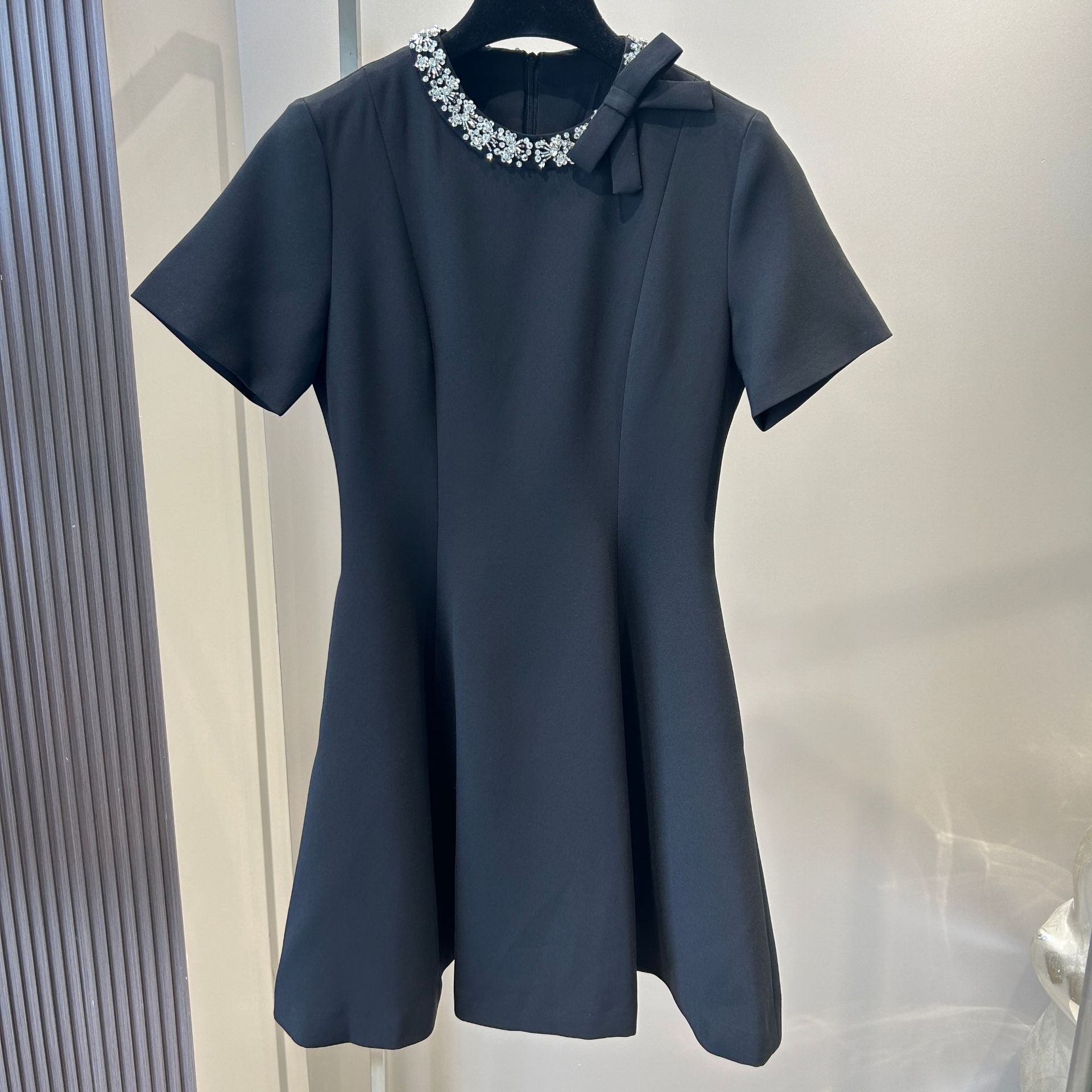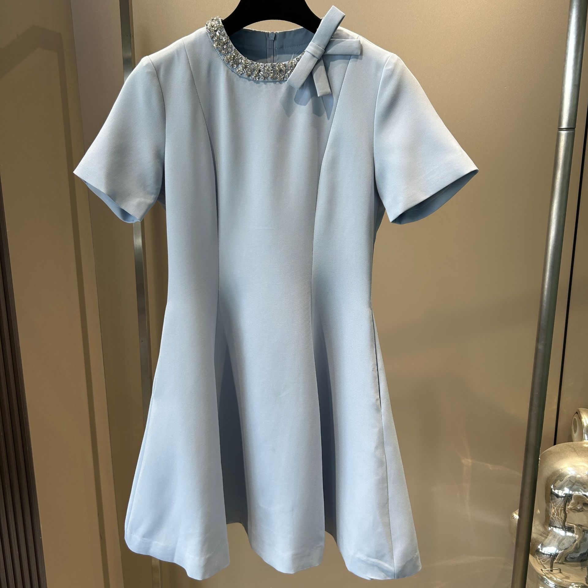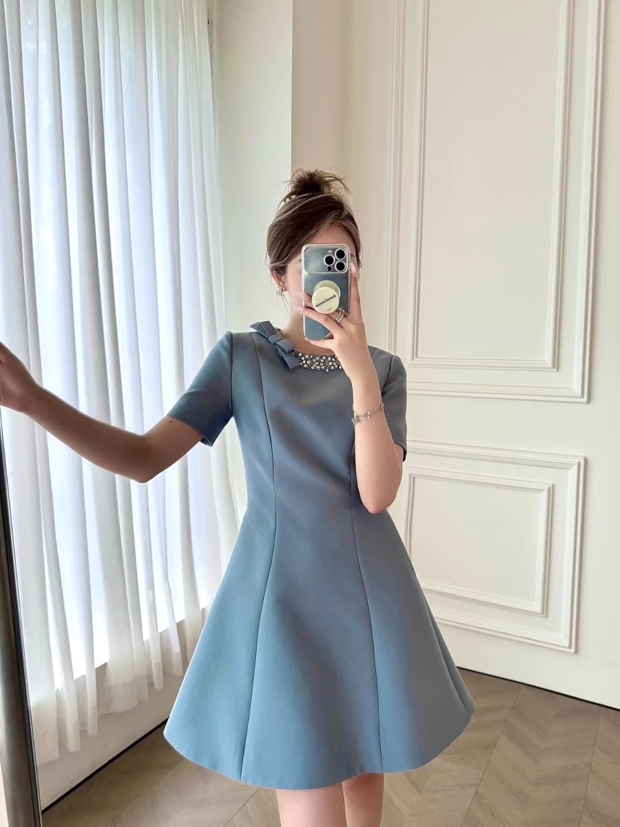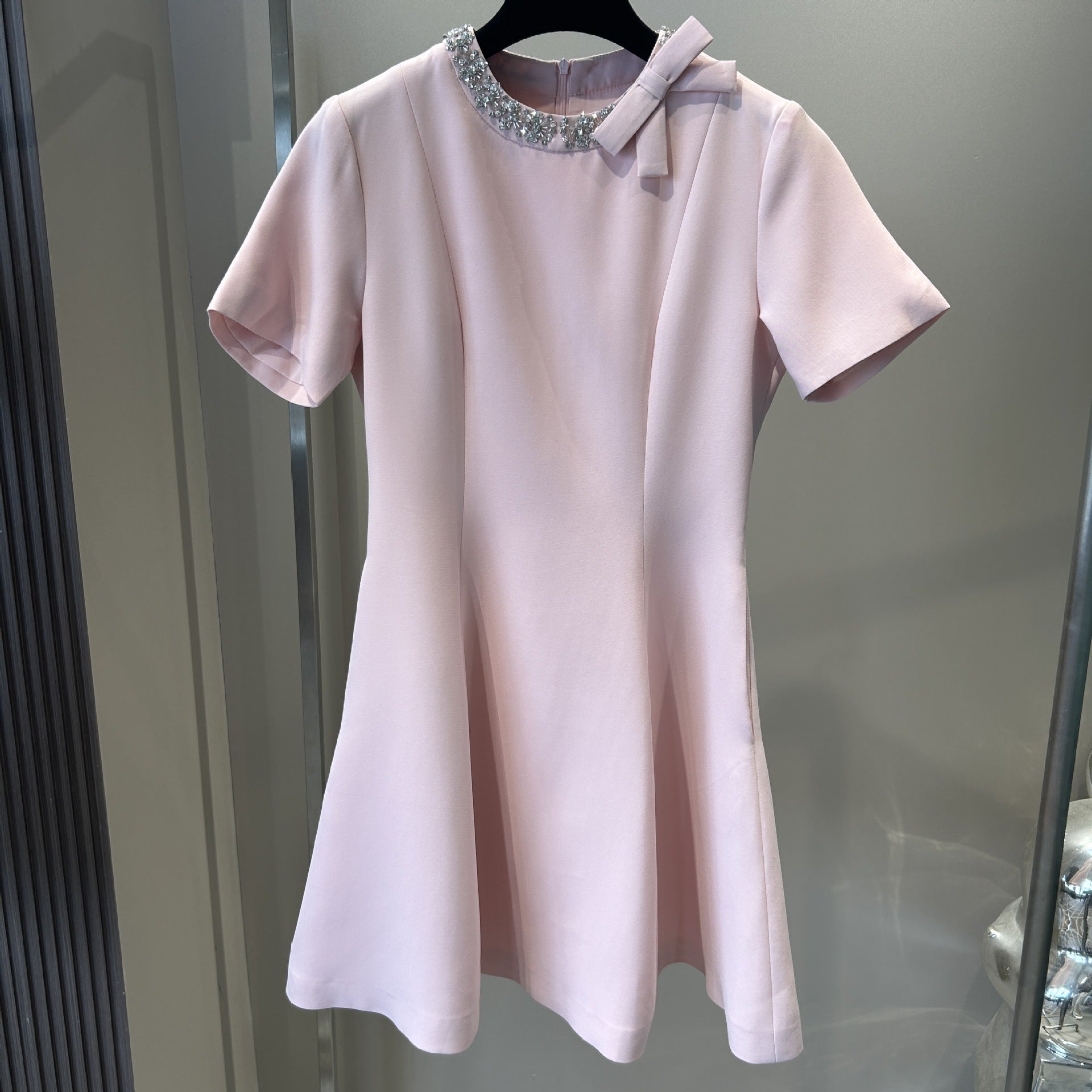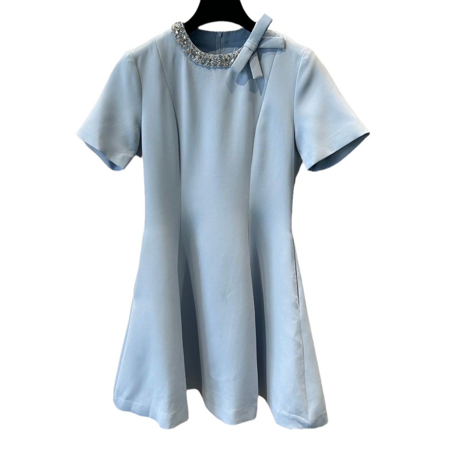 Product information: Pattern: solid color Skirt-type: fishtail skirt Color: pink, blue, black Waist Type: Mid waist Size: S,M,L,XL Style type: private clothing socialite Combination form: Single piece Skirt length: short skirt Popular elements: Diamond Style: Basic Fabric name: silk blend Sleeve type: regular sleeve Main fabric composition: viscose Sleeve length: short sleeve Skirt Category: Dress Style: Socialite style Craft: beaded