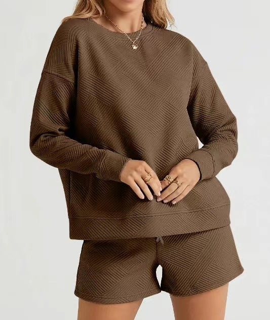 Product information: Pattern: diamond mesh Fabric name: Polyester Color: Milky White, navy blue, brown, lemon yellow Sleeve type: regular sleeve Pants length: Shorts Main fabric composition: Polyester (polyester fiber) Size: S,M,L,XL,XXL Applicable Gender: Female Style type: Japanese and Korean casual