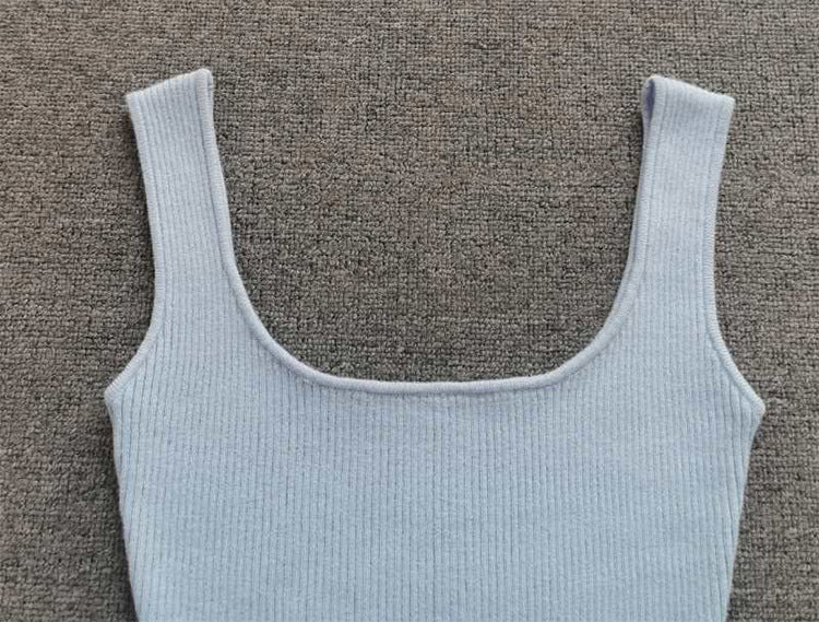 Product Information Style: Sports pattern: plain Style: Two-piece suit Top style: Siamese vest Top sleeve length: sleeveless Process: Printing/Dyeing Fabric name: cotton Main fabric composition: cotton The content of the main fabric ingredient: 71%-80% Main fabric composition 2: polyester fiber (polyester) The content of main fabric ingredient 2: 10%-29% Lining composition: cotton Lining ingredient content: 71%-80% Size Information Color: white, baby blue, dark brown Size: S, M, L