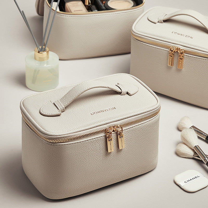 Product Details: Product Category: storage bag Luggage Size: Medium Bag internal structure: grid compartment Material: PU leather Pattern: plain Popular elements: skin texture Color: Beige Square Portable Cosmetic Bag, Elephant Gray Square Portable Cosmetic Bag Size Information: Package Contents: Storage bag X1