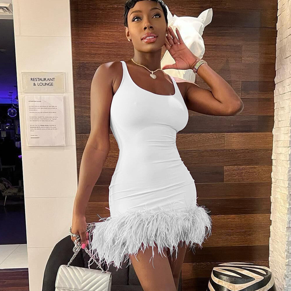 Product information: Fabric name: polyester Pattern: solid color Process: iron-free treatment Style: basic Combination form: single piece Skirt length: middle skirt Skirt type: pencil skirt Collar type: round neck Sleeve type: sleeveless Color: black, white, pink, red, khaki Size information: Size: S, M, L, XL, XXL